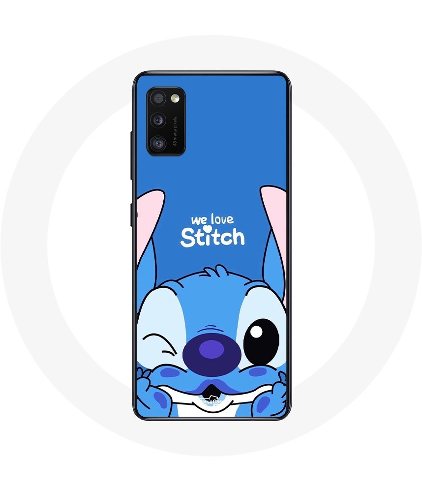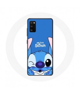 Coque Samsung Galaxy A41 Stitch mignon fond bleu