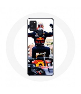 Coque Samsung Galaxy A21S Formule 1 Max Verstappen Pilote automobile F1 noir rouge et jaune