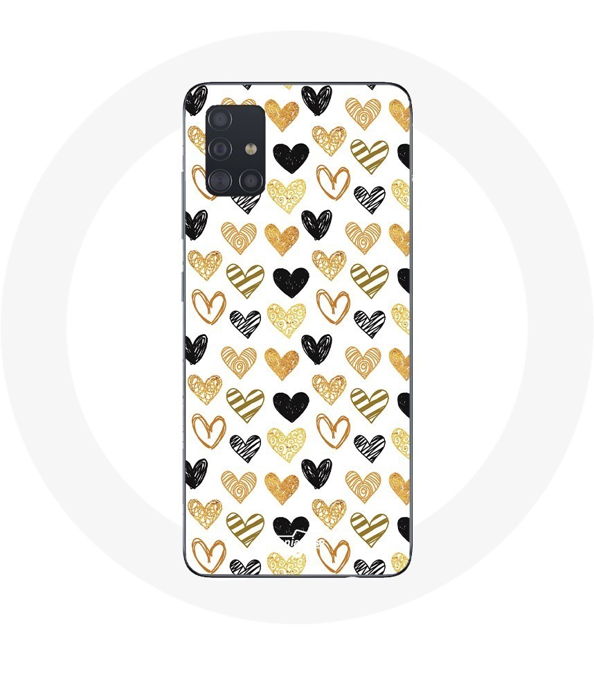 Coque Samsung Galaxy A51 Fond de texture abstraite coeurs noir jaune et gris