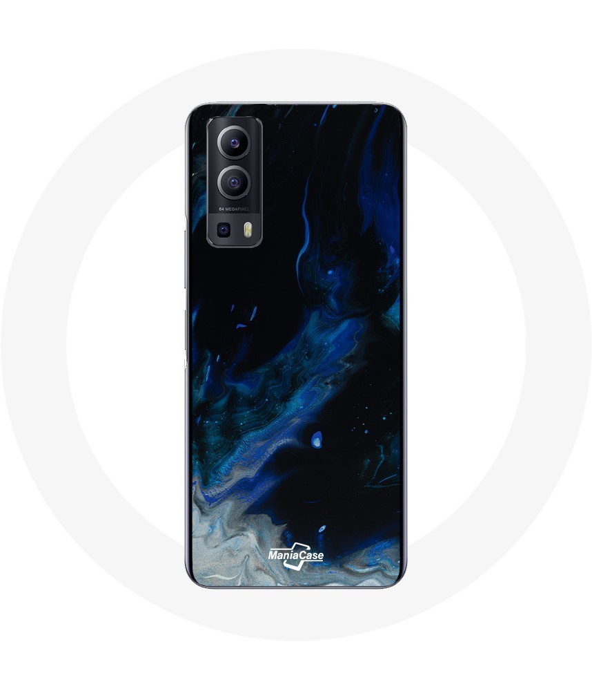 Coque Vivo Y72 nuages de fumée multicolore de bleu gris et noir sur fond noir